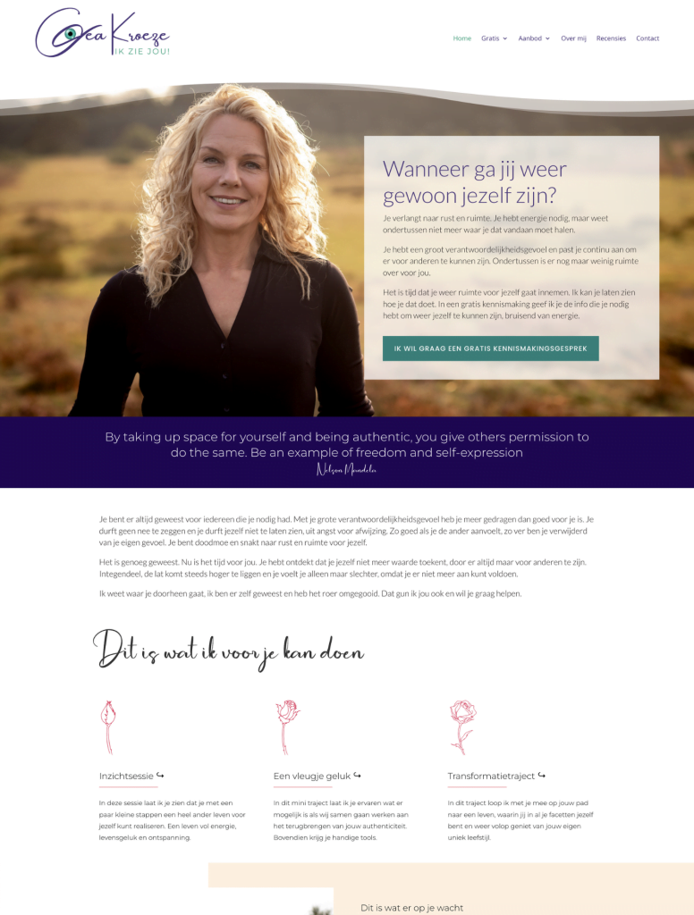 Bewonderingswaardig✨hoe jij mijn website hebt gemaakt ! Het voelt zo goed, zo passend, zo mij😀 Je voelt zo enorm goed aan Linda, alles wat ik niet altijd kon verwoorden zit er gewoon allemaal in. De kleuren de tekst de opmaak het klopt allemaal. Dankbaar dat Linda in dit proces met mij mee wandelde en wij samen zo de stappen maakte naar een prachtige website